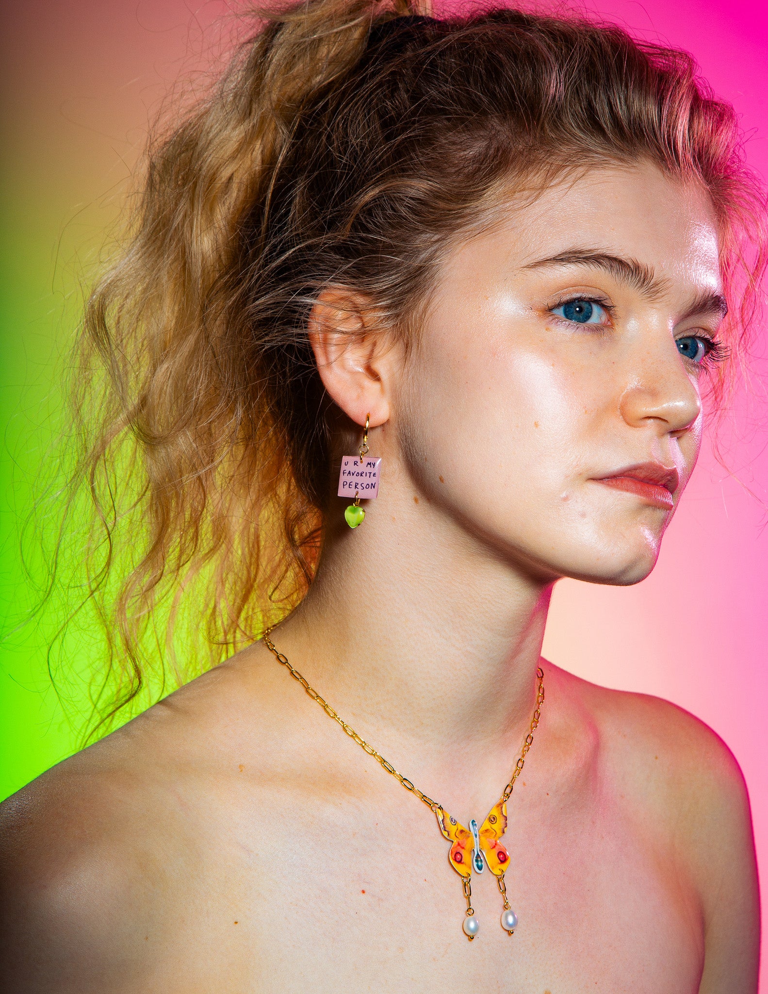 Please be mindful that our jewelry and Picto-Charms™ are handmade at our store in Williamsburg, Brooklyn in New York City. Our pieces are delicate and should be handled with a gentle hand. Our jewelry is made with high-quality materials that are always mentioned in the product listing, but we suggest avoiding direct contact with water, perfume, and lotions, as it may lead to tarnishing or discoloration.