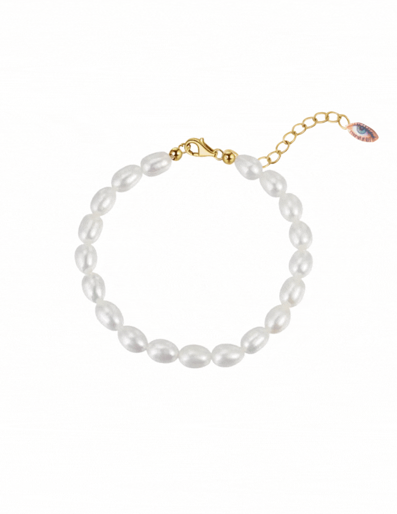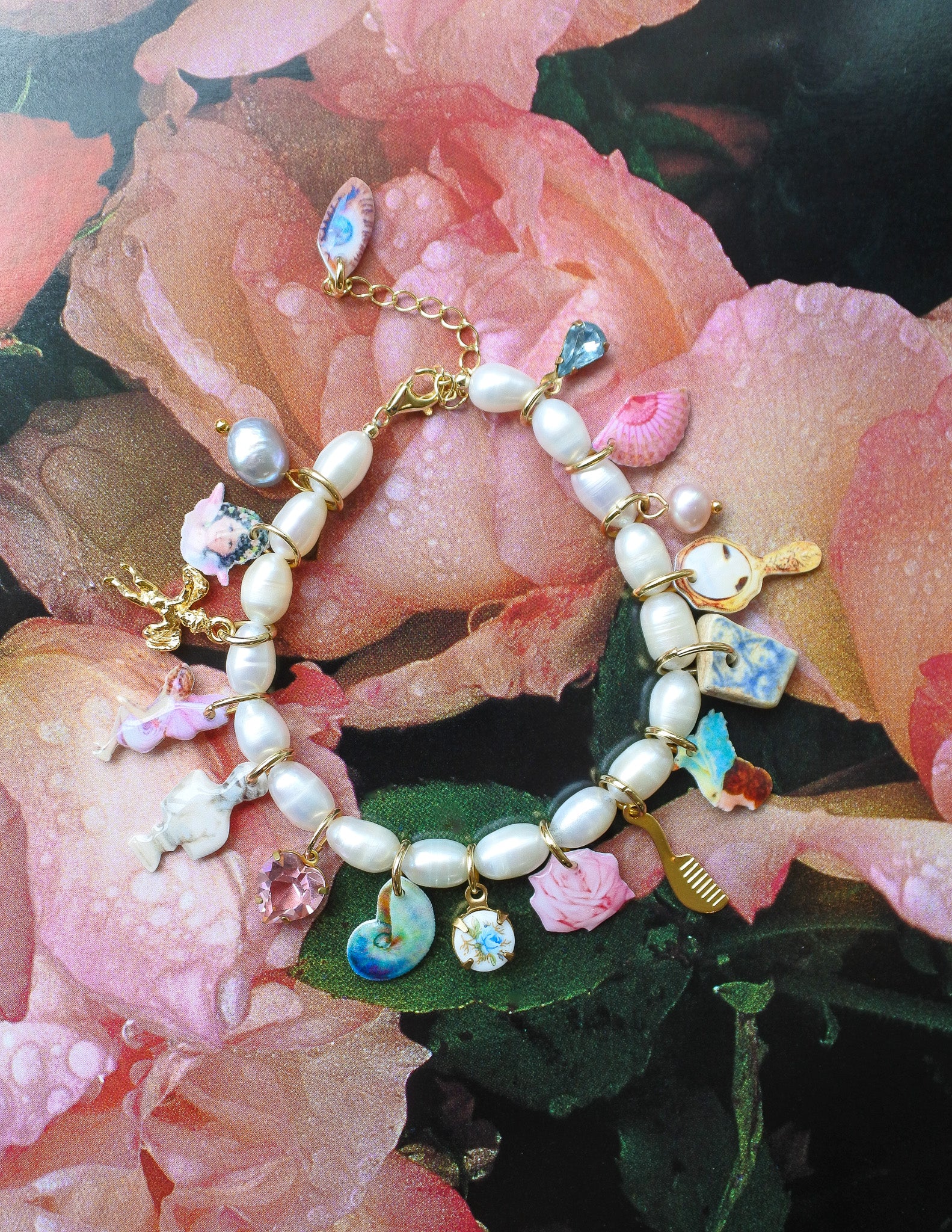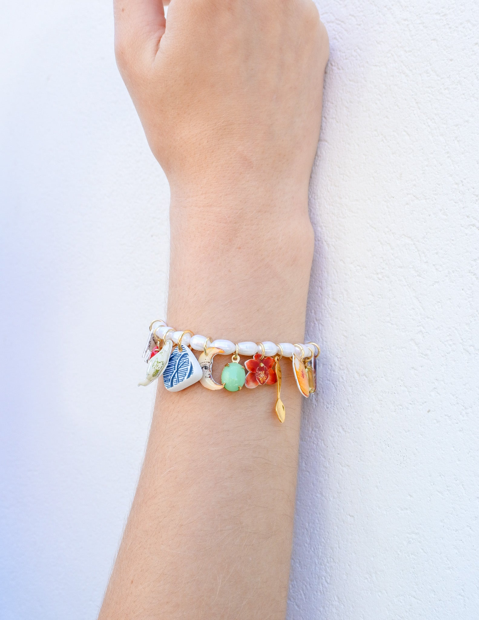 Personalize a pearl bracelet with your favorite Haricot Vert signature Picto-Charms™. One of a kind, always.