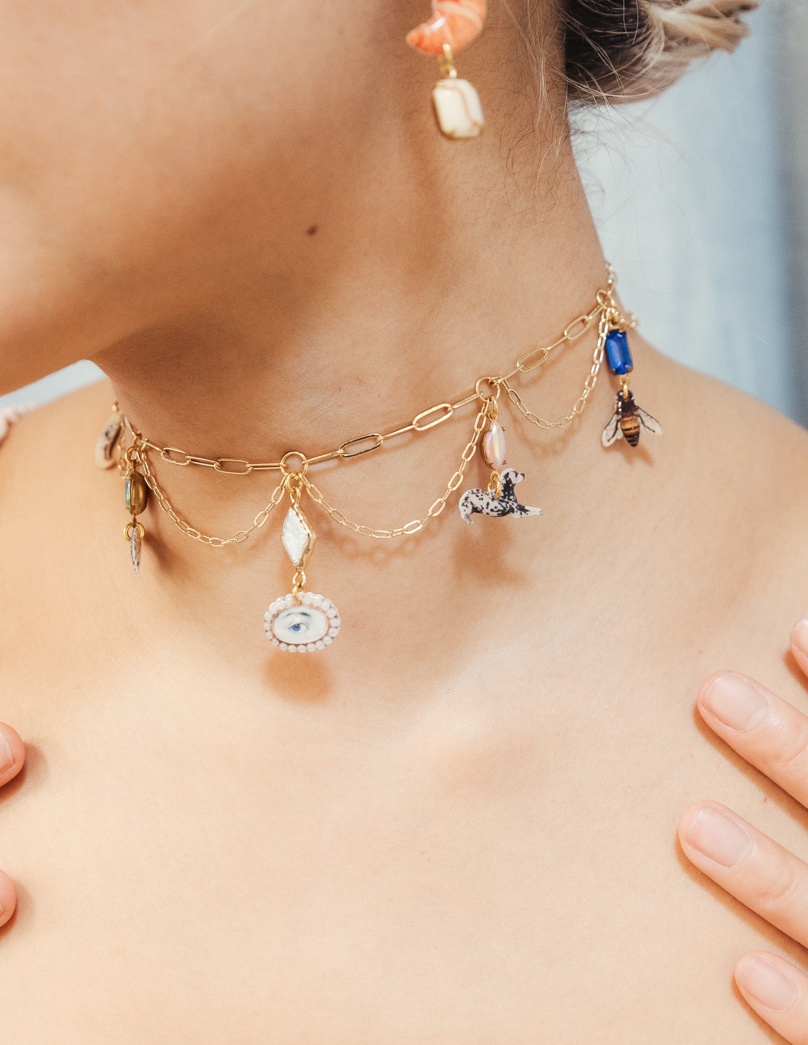 Due to the nature of this hand-crafted production, charms & vintage components will vary slightly in size & look between pieces, making each one unique. We will use our artistic discretion to decide the placement of your charms* & the vintage components we use based on your selections & what is in stock. Haricot Vert celebrates the particularity and uniqueness of each item we put out into the world. Think of it as a little surprise! :)