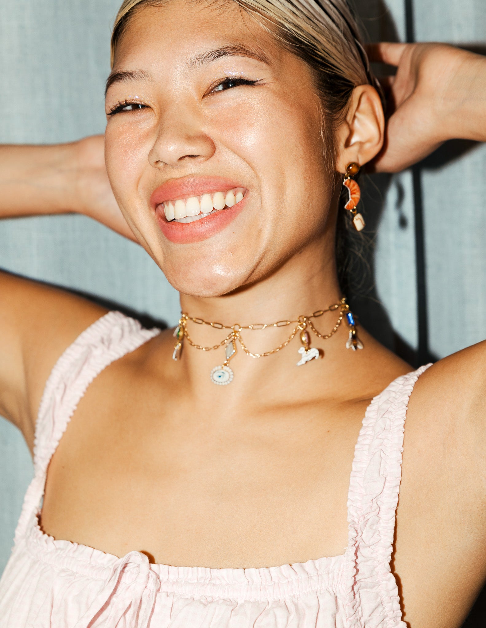 Please be mindful that our jewelry and Picto-Charms™ are handmade at our store in Williamsburg, Brooklyn in New York City. Our pieces are delicate and should be handled with a gentle hand. Our jewelry is made with high-quality materials that are always mentioned in the product listing, but we suggest avoiding direct contact with water, perfume, and lotions, as it may lead to tarnishing or discoloration.