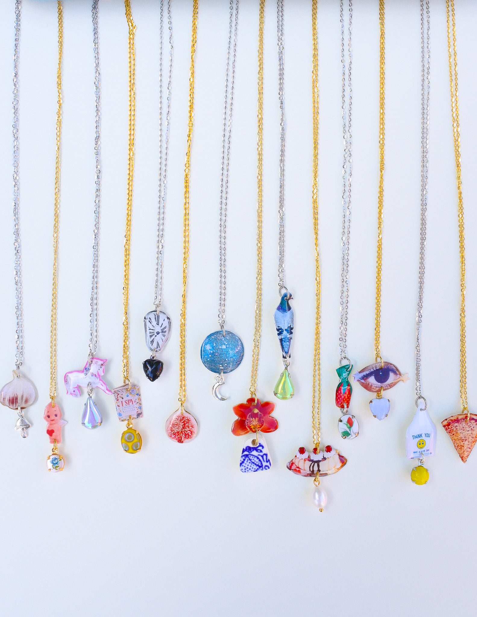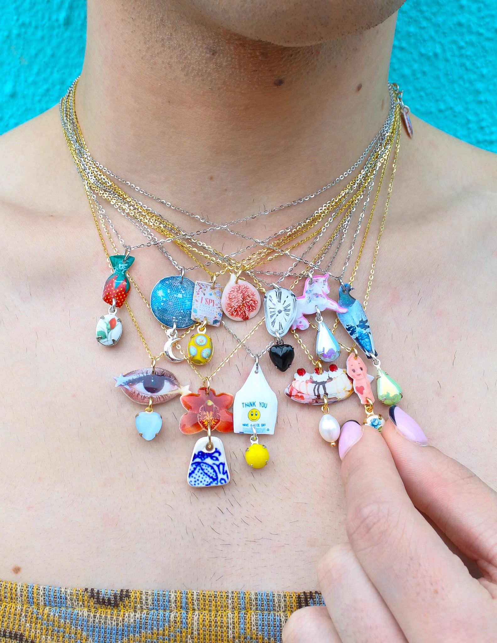 Please be mindful that our jewelry and Picto-Charms™ are handmade at our store in Williamsburg, Brooklyn in New York City. Our pieces are delicate and should be handled with a gentle hand. Our jewelry is made with high-quality materials that are always mentioned in the product listing, but we suggest avoiding direct contact with water, perfume, and lotions, as it may lead to tarnishing or discoloration.