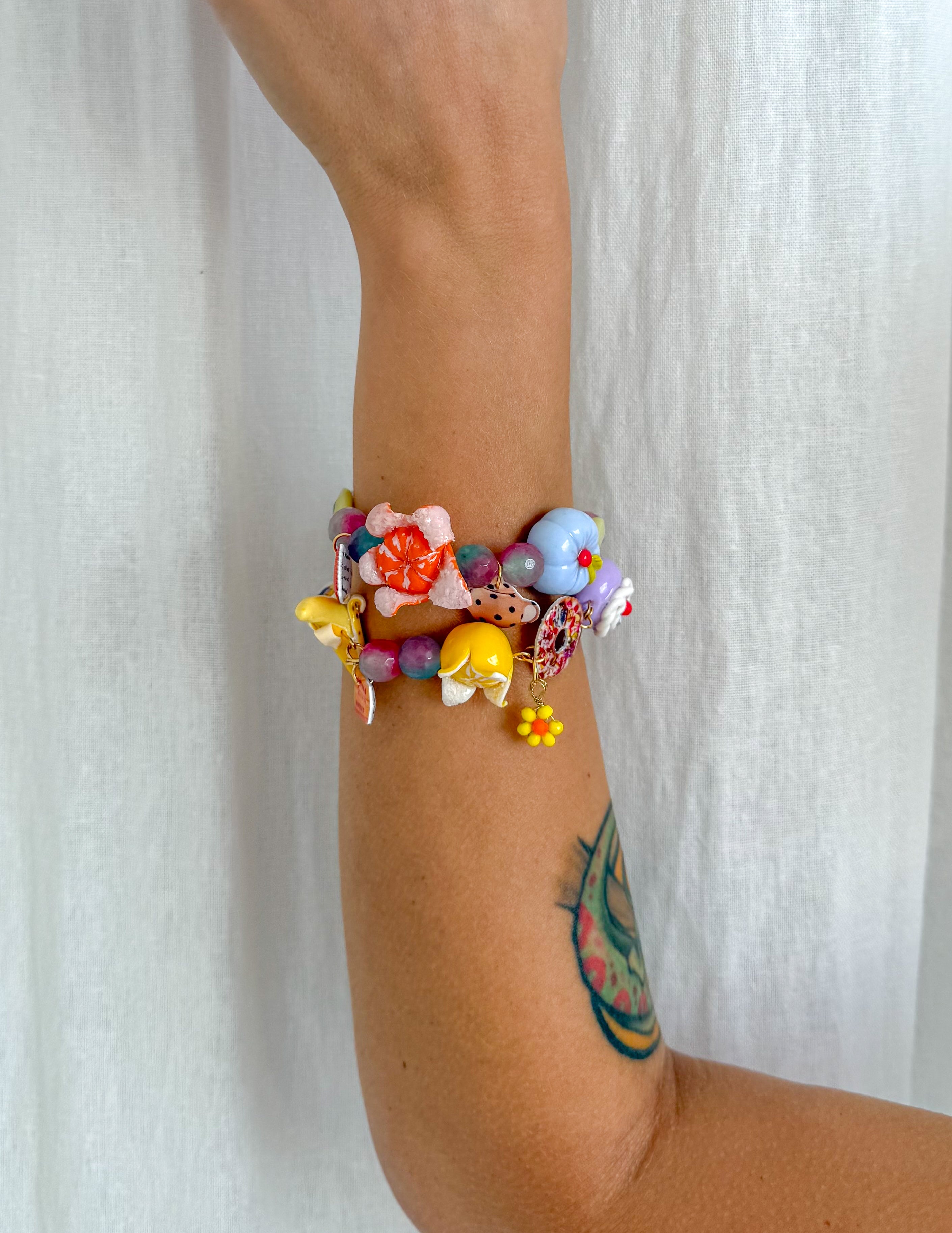Introducing a playful and unique collaboration between Haricot Vert’s Kelsey Armstrong and jewelry designer & nail artist, Nail Restaurant. This limited edition capsule blends her nail-art inspired charms with Haricot Vert's collage-style picto-charms™ to create a 1/1 collection that tells the story of high tea, full of citrus and whimsy.