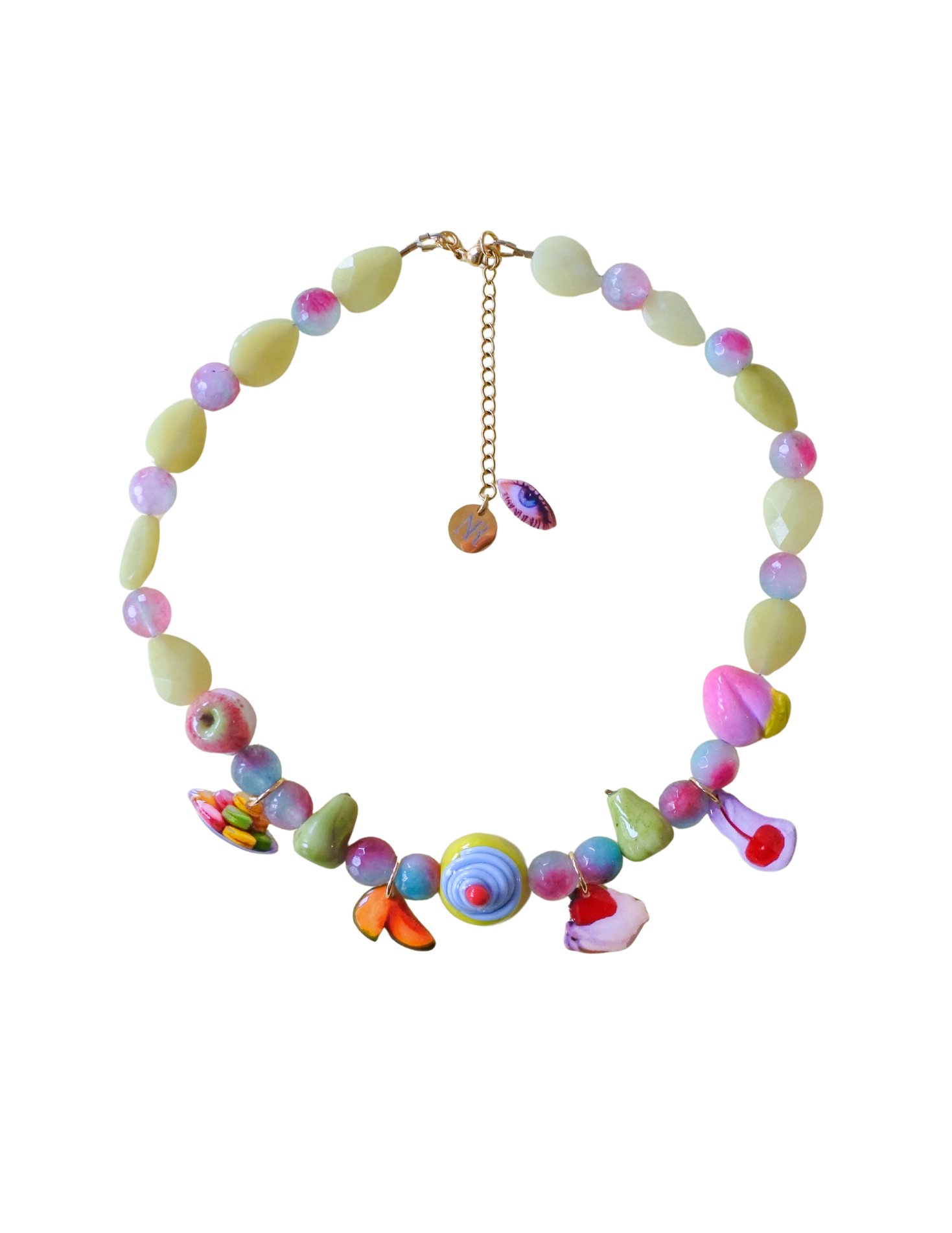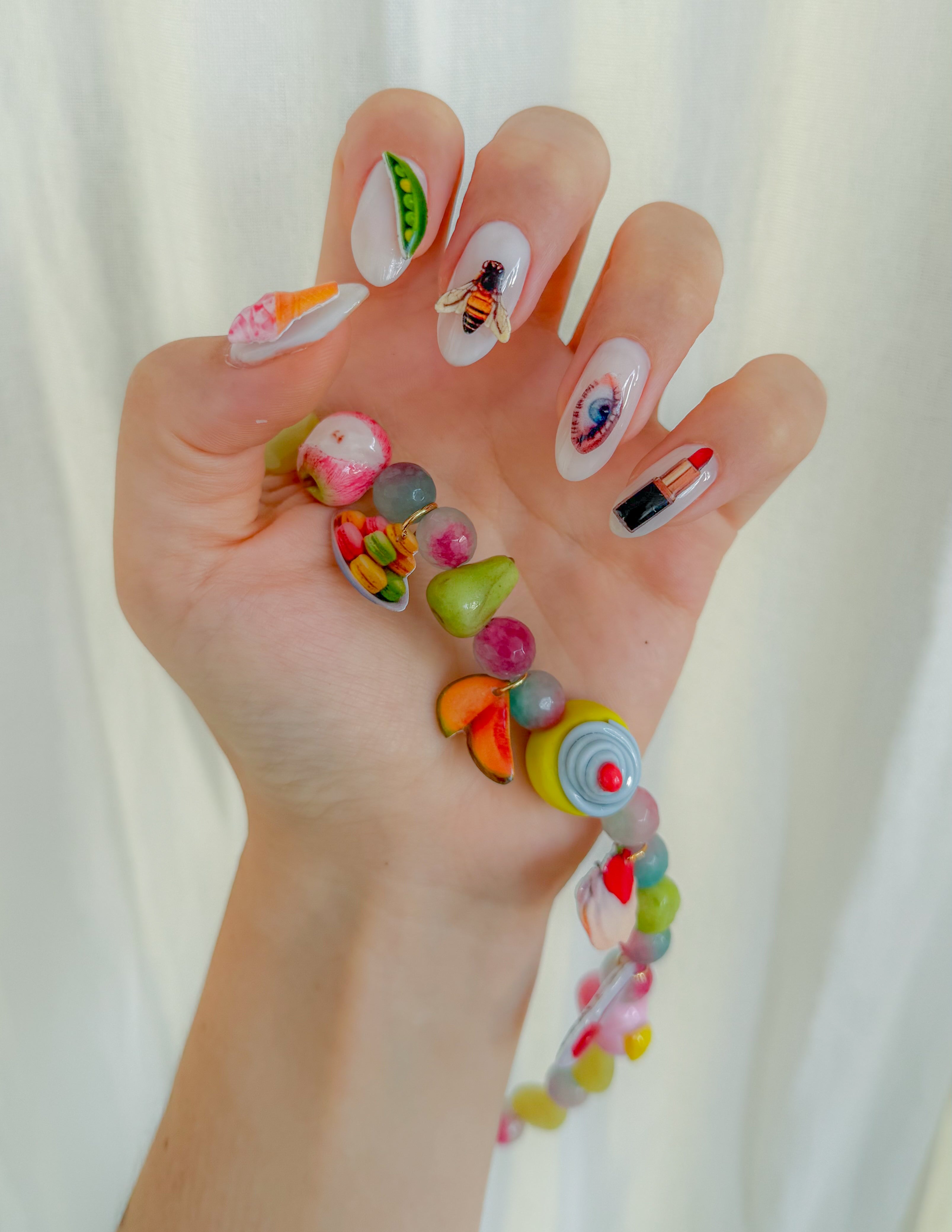 Introducing a playful and unique collaboration between Haricot Vert’s Kelsey Armstrong and jewelry designer & nail artist, Nail Restaurant. This limited edition capsule blends her nail-art inspired charms with Haricot Vert's collage-style picto-charms™ to create a 1/1 collection that tells the story of high tea, full of citrus and whimsy.