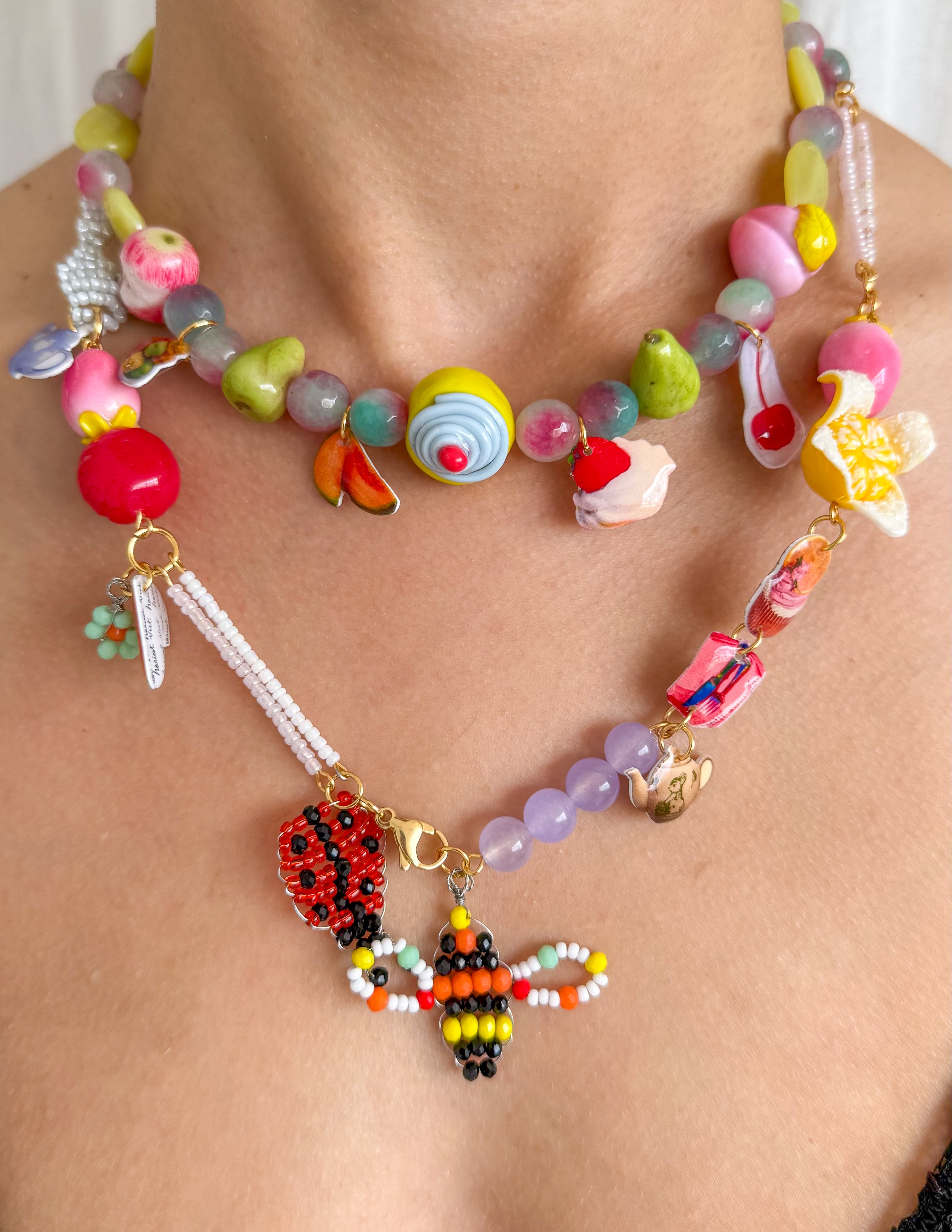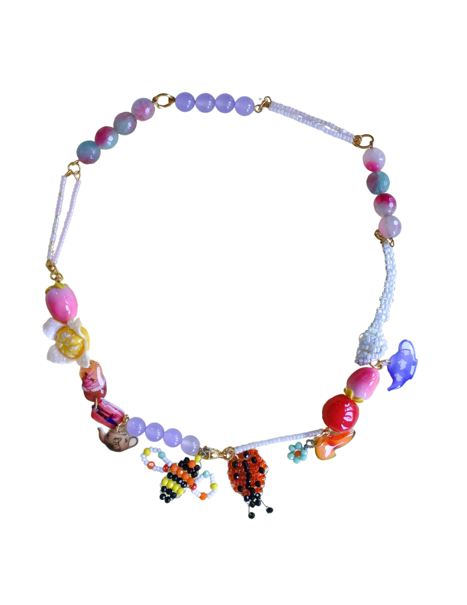 Introducing a playful and unique collaboration between Haricot Vert’s Kelsey Armstrong and jewelry designer & nail artist, Nail Restaurant. This limited edition capsule blends her nail-art inspired charms with Haricot Vert's collage-style picto-charms™ to create a 1/1 collection that tells the story of high tea, full of citrus and whimsy.
