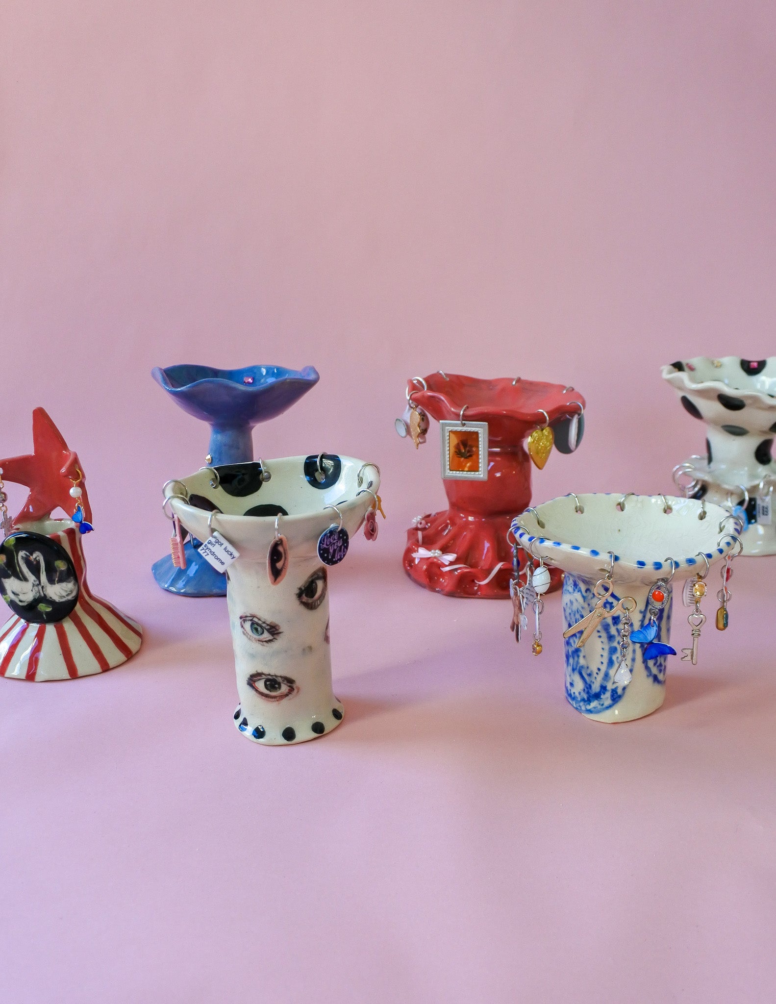 a one-of-a-kind ceramic piece, thoughtfully handbuilt and hand-painted by ceramicsalyssa. this whimsical work features a porcelain base adorned with haricot vert–inspired handmade picto-charms, paired with a curated mix of vintage and antique findings. a soulful, story-rich object made to bring charm and character to any space.