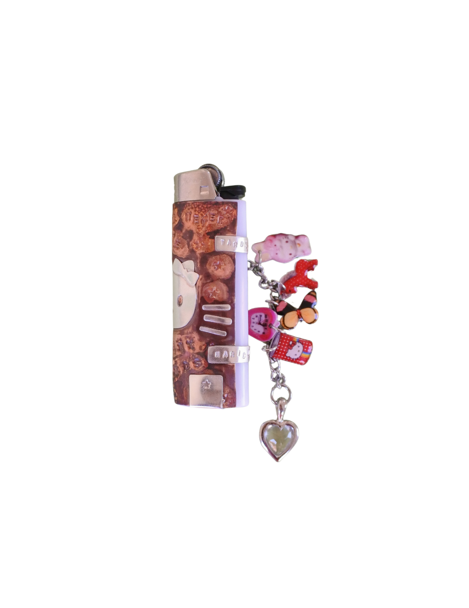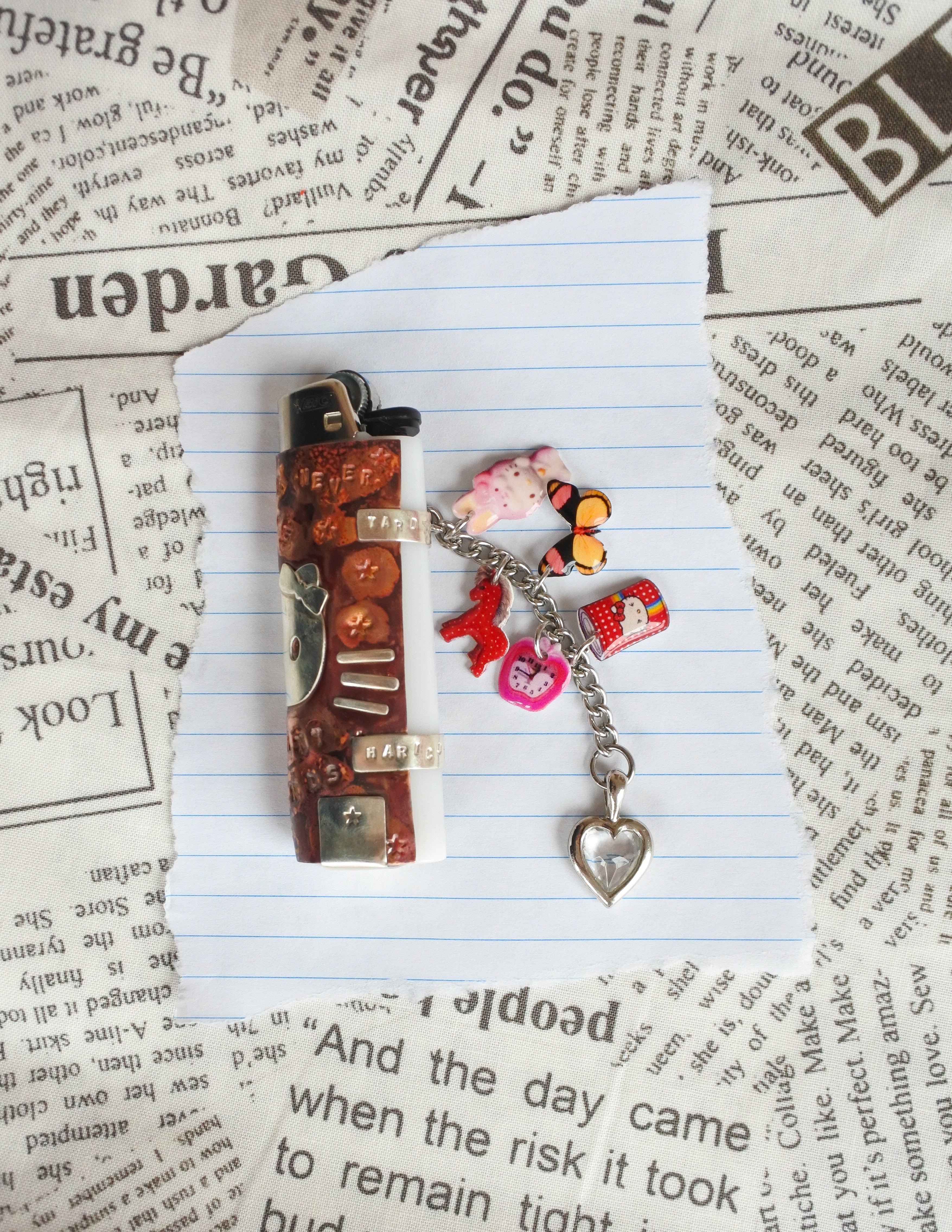 a one-of-a-kind lighter handcrafted by ali of yard sale, adorned with our picto-charms and vintage findings. handmade in new york & chicago